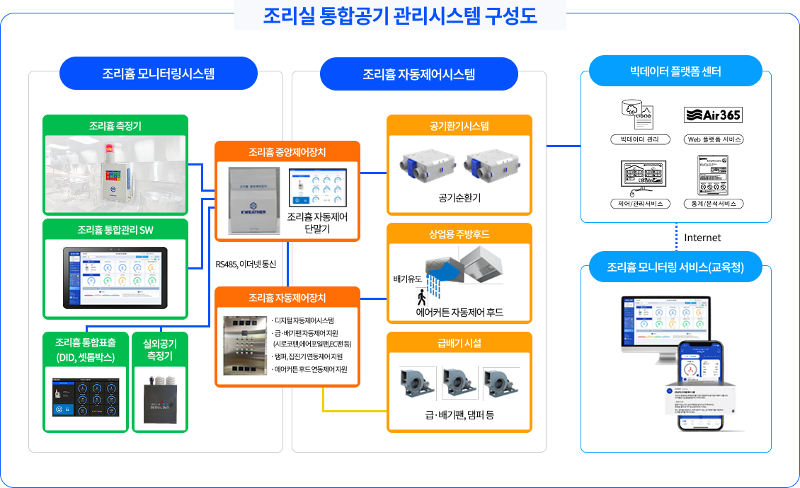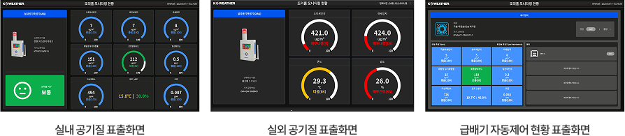 · 공기질 오염도에 따라, 주방후드·급배기·송풍기·환기구·루프·조명 시스템 등 실시간 원격·자동제어