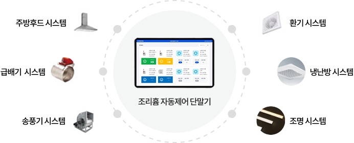 급배기팬, 주방후드, 환기 시스템까지 실시간 자동제어 기능과 편의성을 제공합니다.