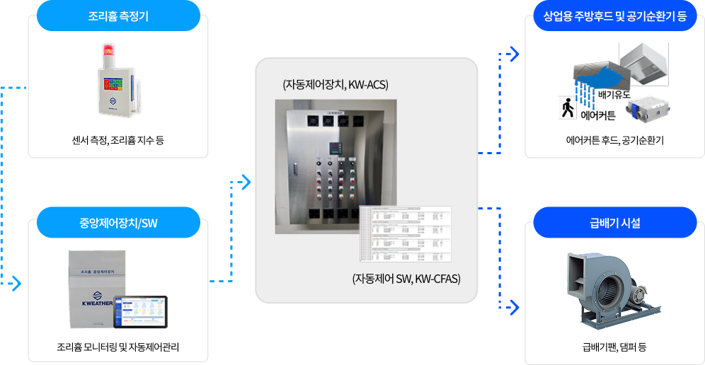조리흄 자동제어장치(KW-ACS) 학교별 설치 환경에 최적화된 맞춤형 자동제어장치와조리흄 중앙제어장치 연동을 통한