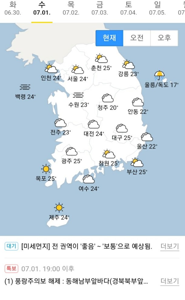 해상단기예보_40지역 | 해상주간예보_40지역 | 동네예보_동단위